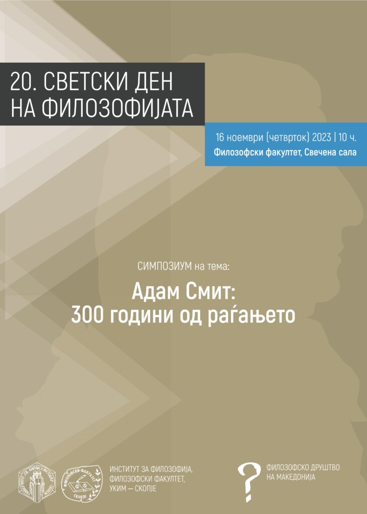 Средишен академски дел на чествувањето беше симпозиумот на тема АДАМ СМИТ: 300 ГОДИНИ ОД РАЃАЊЕТО во којшто во две блок сесии учествуваат седум (7) истакнати филозофи, професори и истражувачи (редоследно): проф. Љубомир Гајдов,