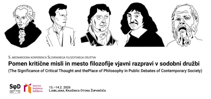 Пренесуваме информација за Петтата меѓународна конференција на Словенечкото филозофско друштво, којашто ќе се одржи на 13-14 февруари (петок-сабота) во Љубљана. Темата на Конференцијата гласиThe Significance of Critical Thought and