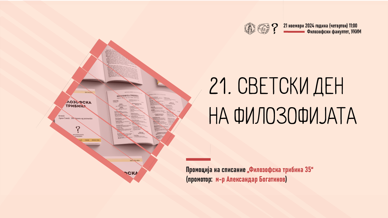 Потсетуваме на промоцијата на „Филозофска трибина 35“ што се одржа на 21 ноември 2024 г. во Салата за седници на Филозофскиот факултет – Скопје. Промоцијата беше дел од програмата за 21. одбележување на Светскиот...