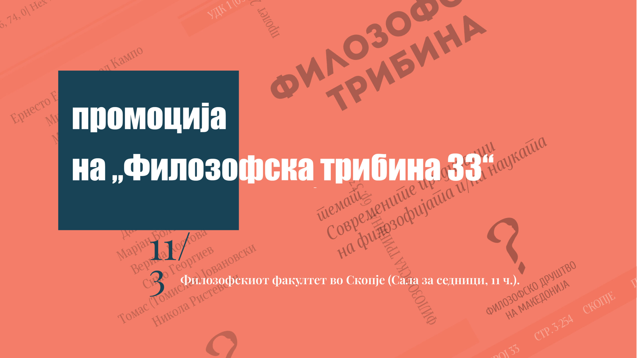 Потсетуваме на промоцијата на „Филозофска трибина“ (број 33) што се одржа на 11 март 2024 г. во Салата за седници на Филозофскиот факулет – Скопје. Списанието го промовираше проф. д-р Марија Тодоровска. Видеото од...