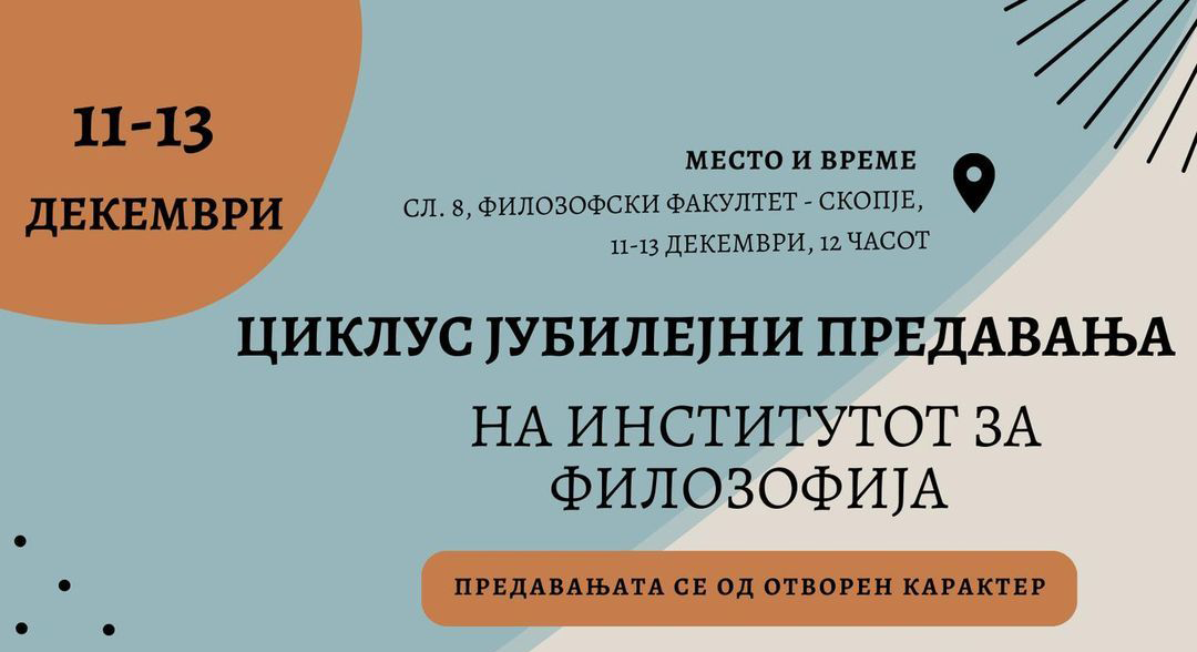Информираме за една убава традиција што низ годините ја негува Институтот за филозофија при Филозофскиот факултет во Скопје, односно, за одбележувањето на јубилеите од животите на пензионираните професори на Институтот за филозофија преку организирање...