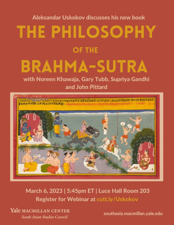 На 6 март 2023г., во Советот за Јужноазиски студии при Универзитетот Јејл ќе се одржи промотивна дискусија за книгата „Филозофијата на Брахма-сутра“ (The Philosophy of the Brahma-sutra) на нашиот колега Александар Ускоков. Модератор на дискусијата ќе биде Суприја Гандхи од Јејл, катедра за религиски студии, а дискутанти ќе бидат Гери Таб од Универзитетот на Чикаго и Норин Кхваџа и Џон Питард од Јејл, катедра за религиски студии. Настанот ќе може да се проследи и online преку платформата Zoom, со тоа што претходно треба да се регистрирате на следниот линк: