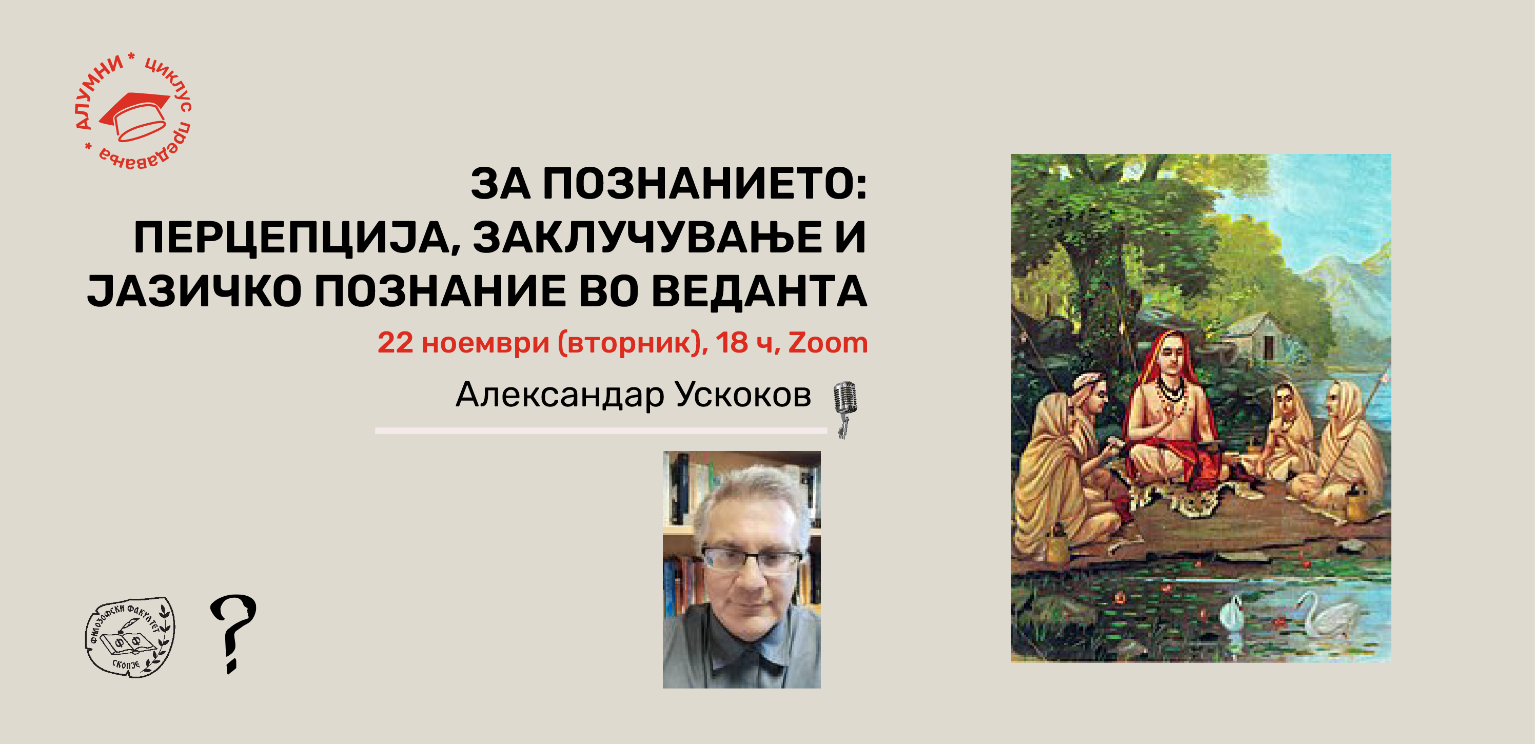 На 22 ноември (вторник, 18 ч., Zoom-платформа), Филозофското друштво на Македонија и Институтот за филозофија при Филозофскиот факултет во Скопје организираат онлајн предавање со колегата д-р Александар Ускоков (Lector in Sanskrit, South Asian Studies...